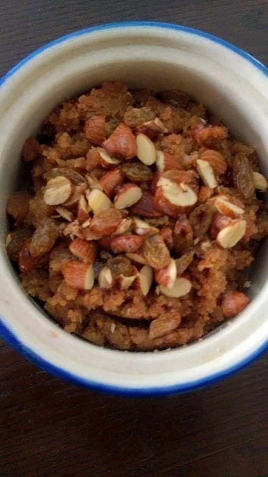 Dry dates are an excellent source of Iron. This halwa is very good for those suffering from anaemia. It is a great cure for constipation as well.